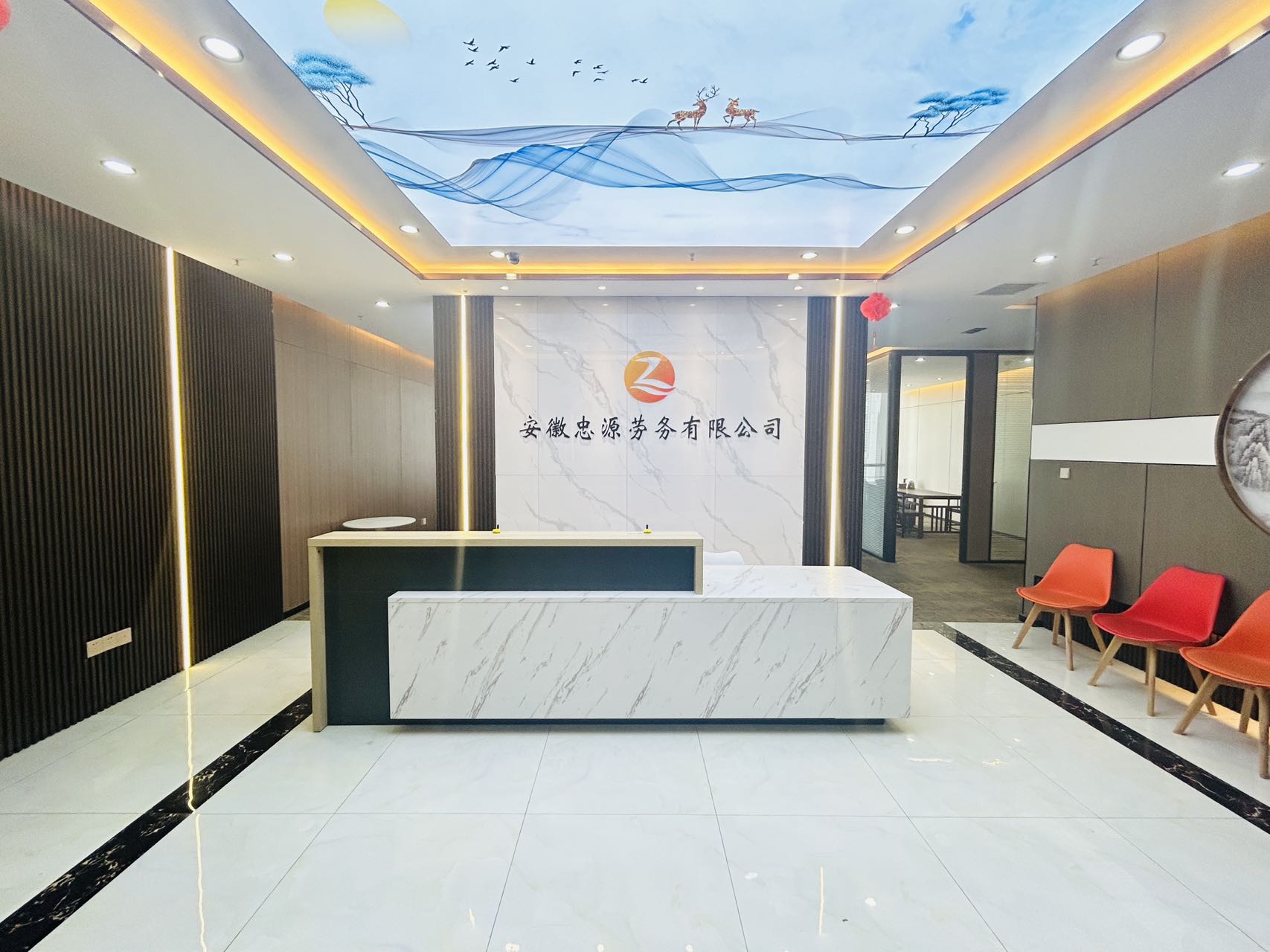 3.正对电梯口位置;出电梯就能看到公司大气前台;