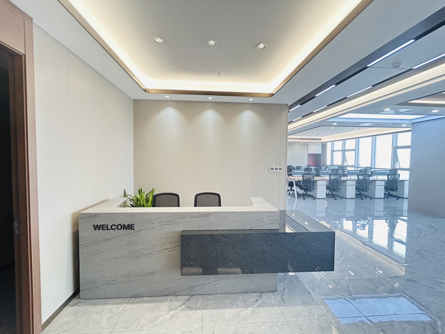 3.正对电梯口位置;出电梯就能看到公司大气前台;