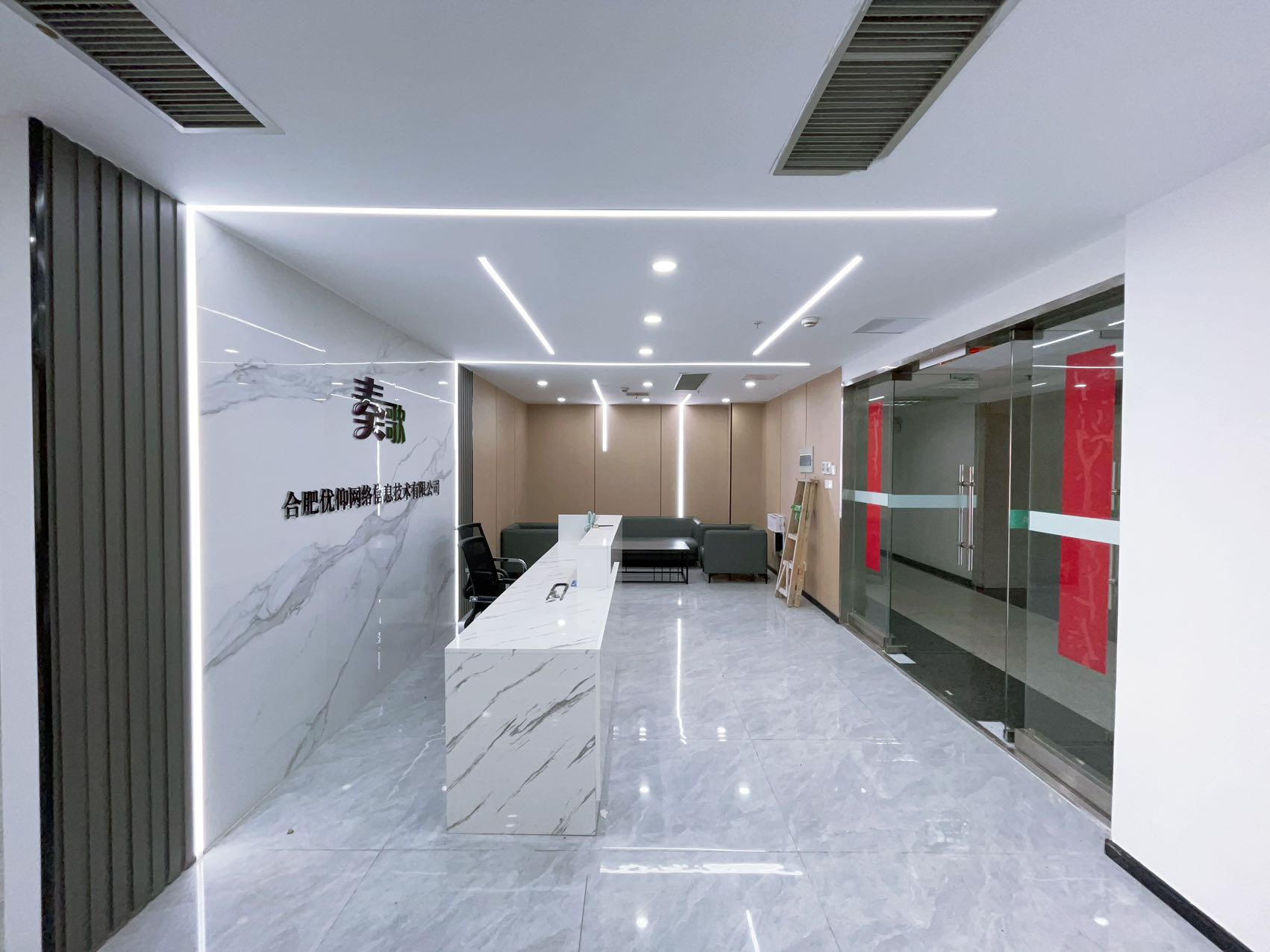 3.正对电梯口位置;出电梯就能看到公司大气前台;