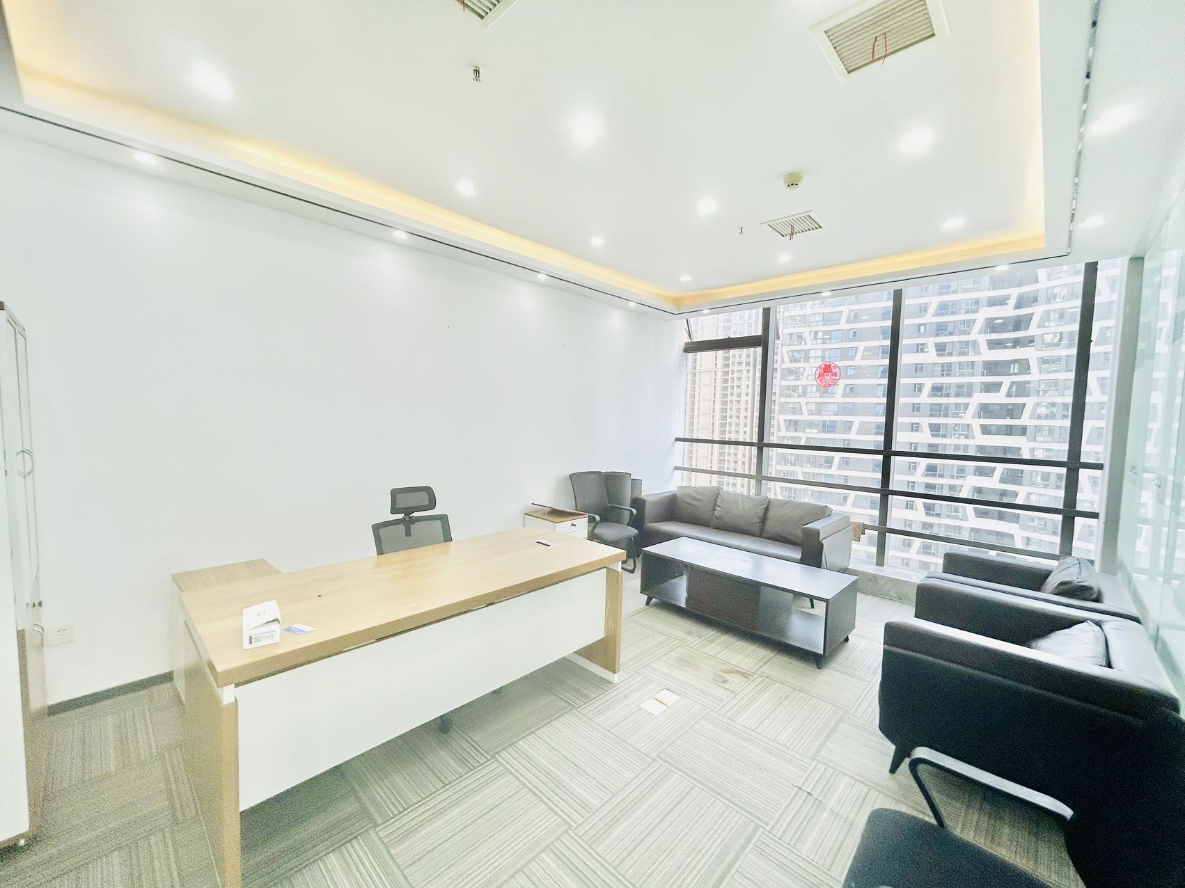 宽带有线电视水电电话中央空调电梯集中供暖办公家具免费车位员工餐厅安全监控
