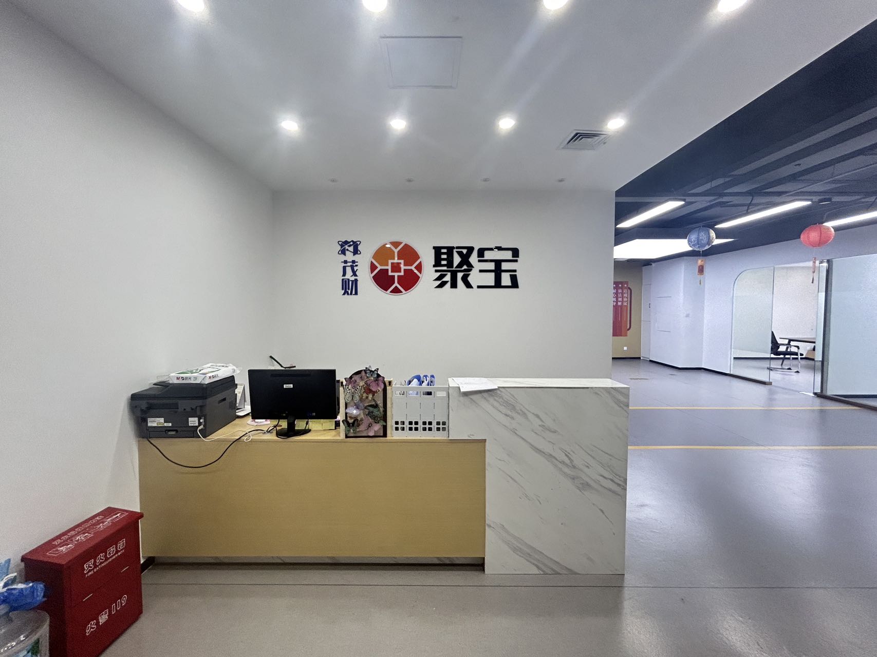 3.正对电梯口位置;出电梯就能看到公司大气前台;