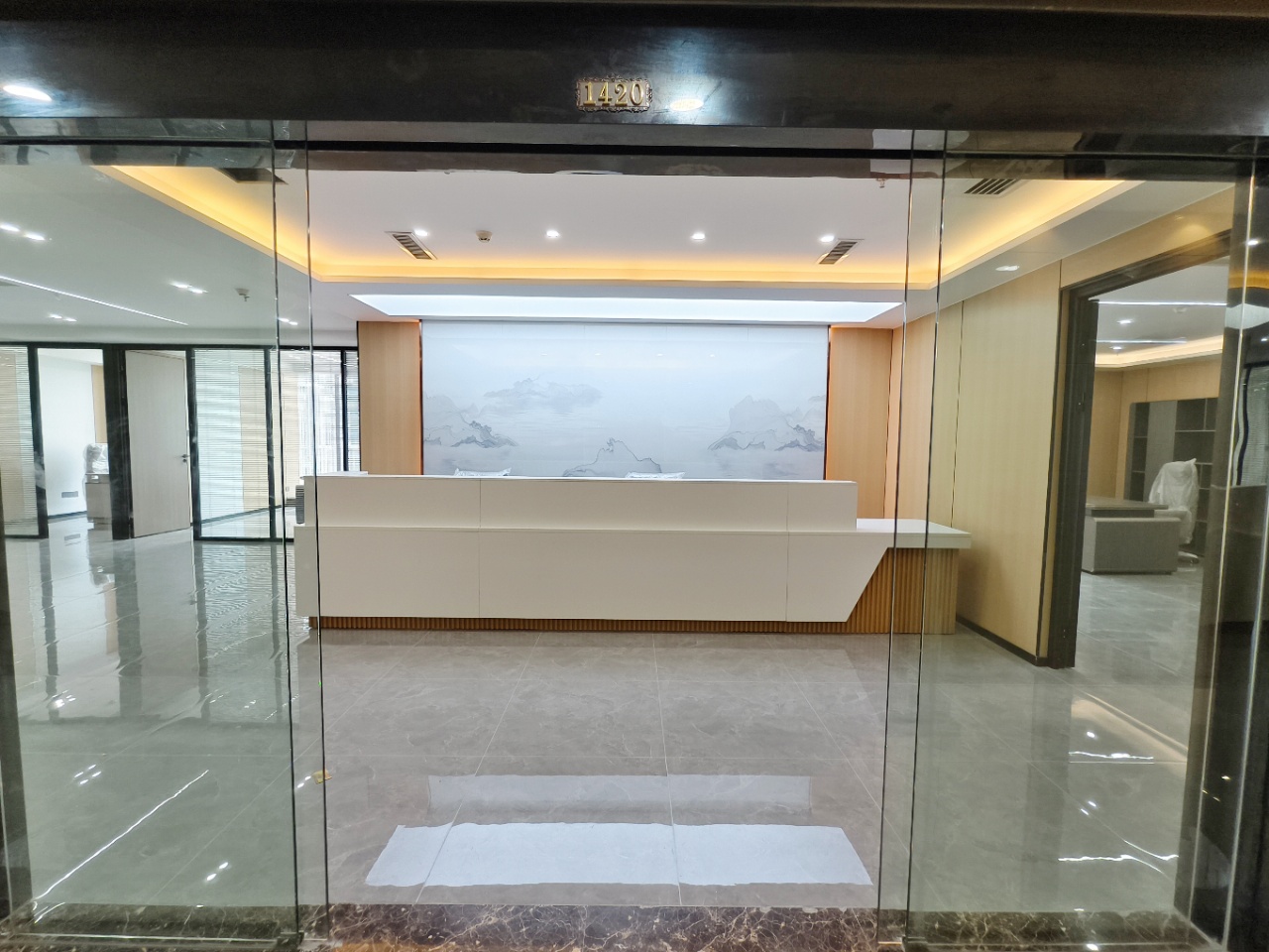 3.正对电梯口位置;出电梯就能看到公司大气前台;