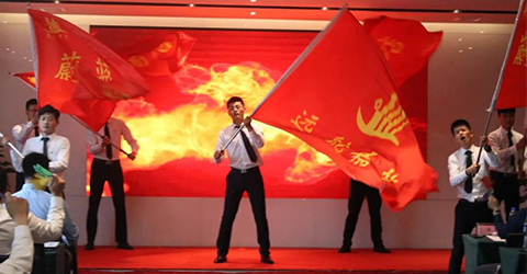 伙伴们挥舞着各店面的旗帜,高呼“远航嘉业,向着远方航行!”瞬间在场的气氛被点燃。