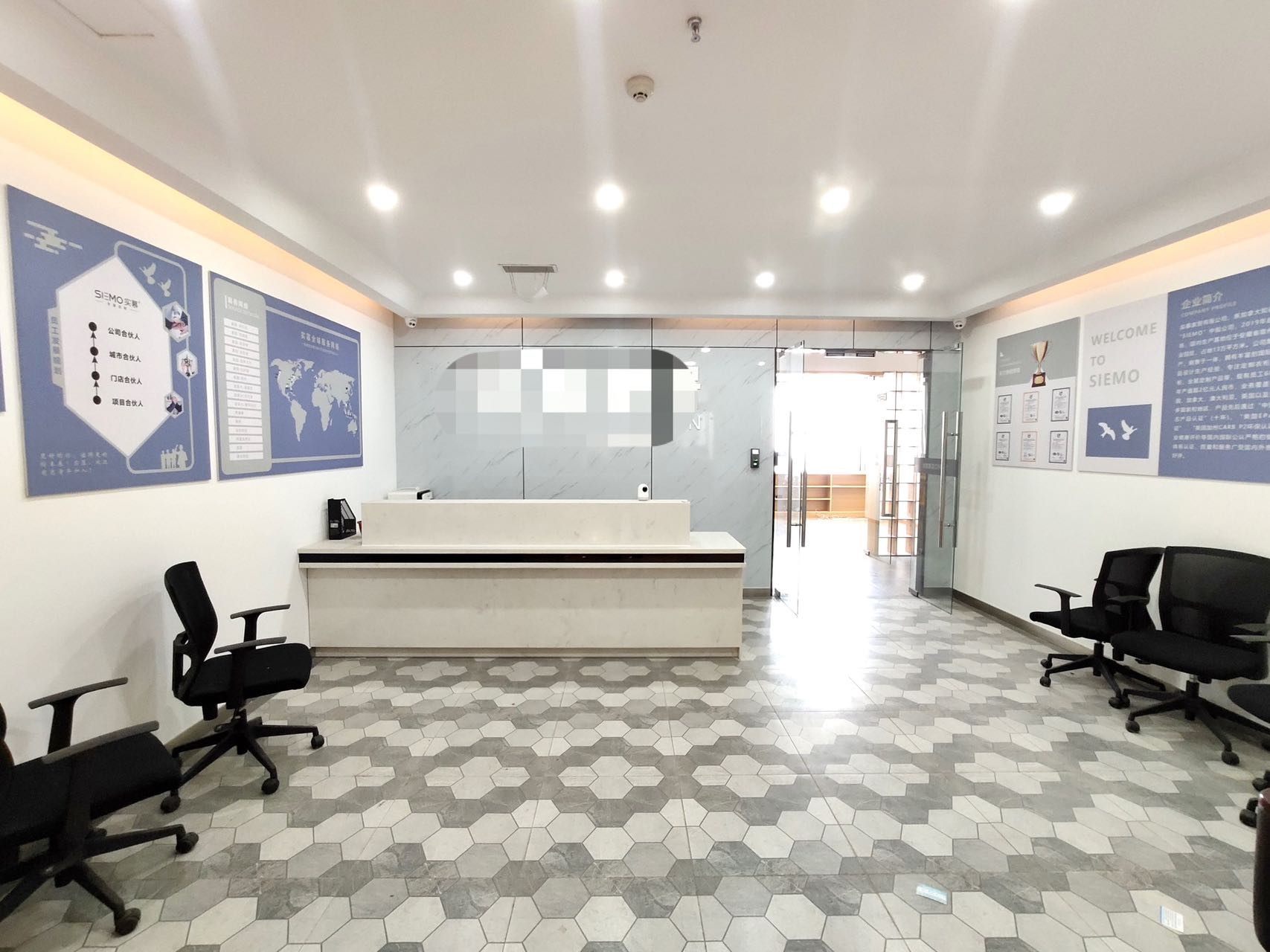3.正对电梯口位置;出电梯就能看到公司大气前台;