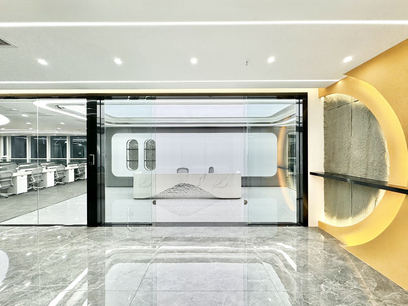 3.正对电梯口位置;出电梯就能看到公司大气前台;