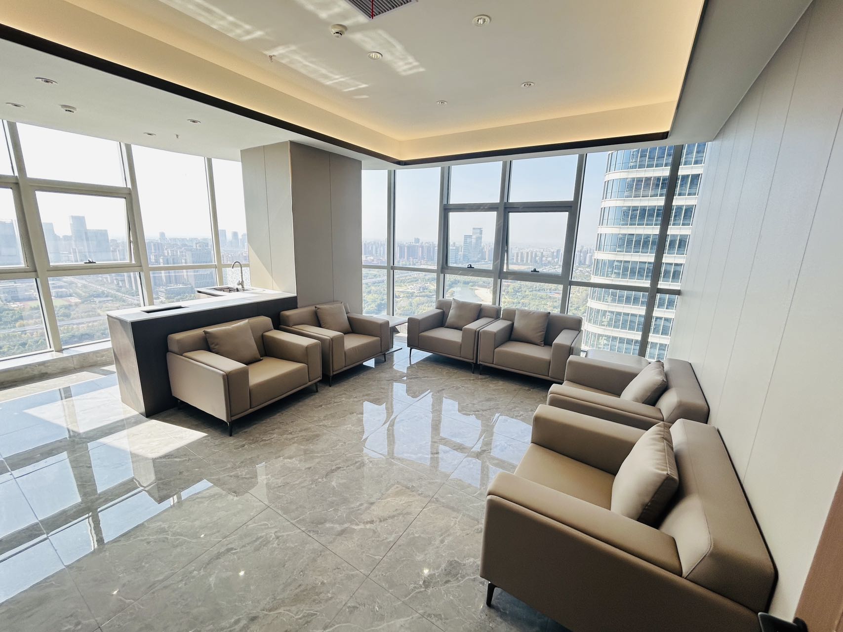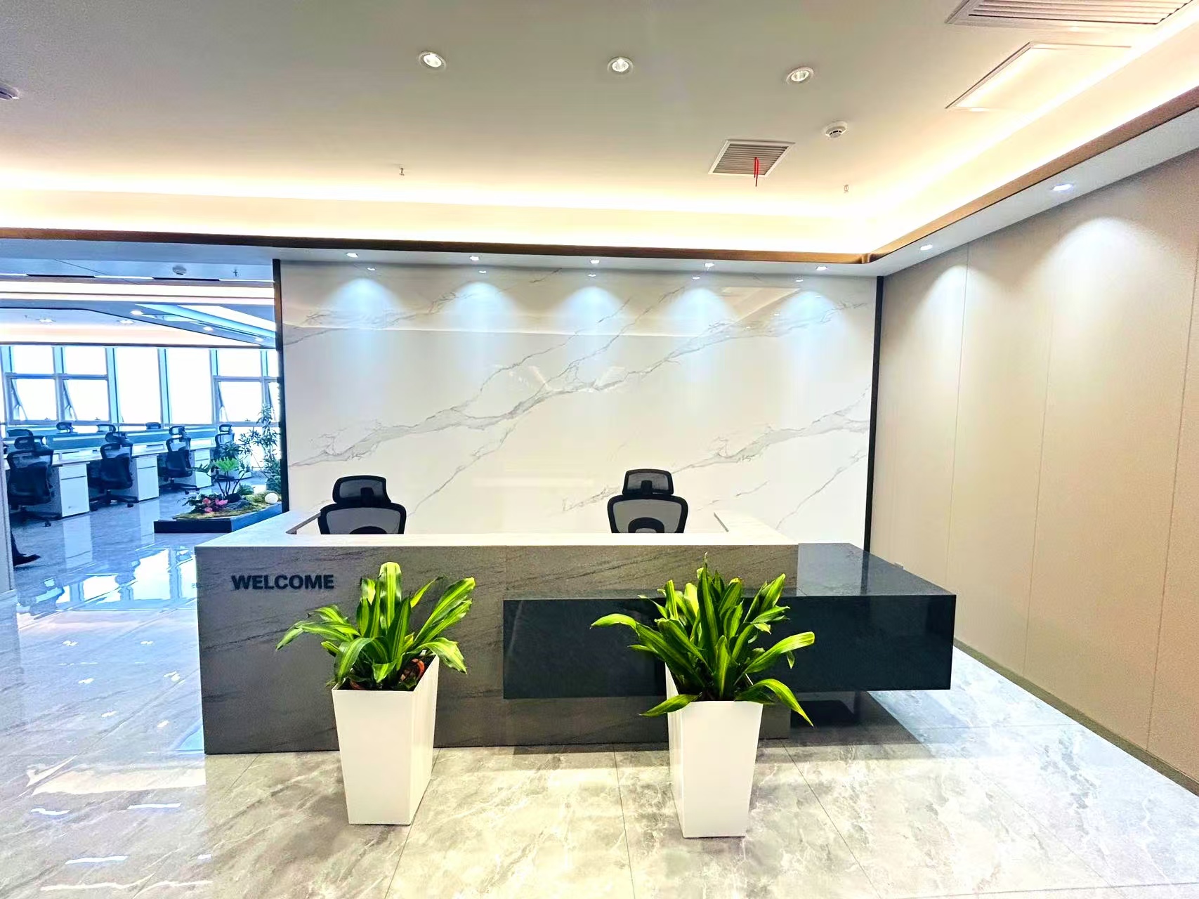 3.正对电梯口位置;出电梯就能看到公司大气前台;
