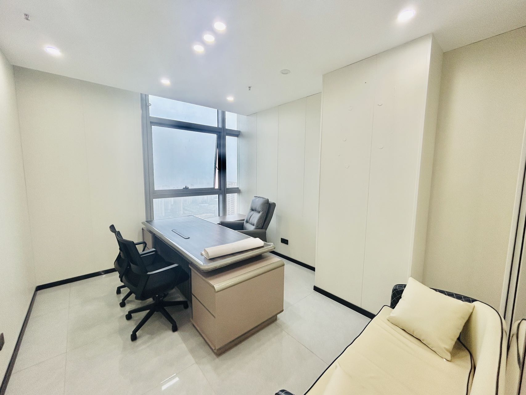 宽带有线电视水电电话中央空调电梯集中供暖办公家具免费车位员工餐厅安全监控